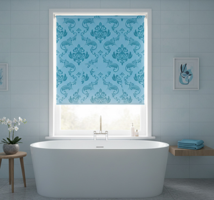 Reference: E6165Introducing our stunning Bathroom blind in blue botanical curves, a perfect blend of elegance and functionality. This beautifully designed roller blind features intricate botanical curves in calming blue tones, enhancing your bathroom's atmosphere while providing essential privacy. Its unique design is not only visually appealing but also serves to regulate room temperature, ensuring a comfortable space all year round.