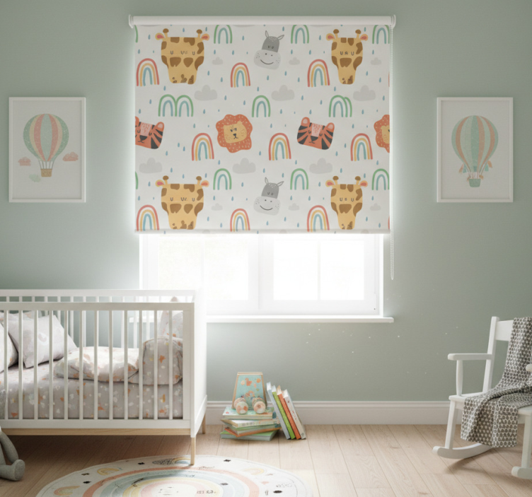 The Blind children cute pastel animals and rainbows blind children roller blind transforms any space into a magical wonderland. Its playful design not only enhances the room's aesthetic but also provides a comforting environment for blind children. This roller blind encourages a sense of security and warmth, making it an ideal choice for any child's bedroom. Let the vibrant colors and cute animals inspire joy and creativity every day!