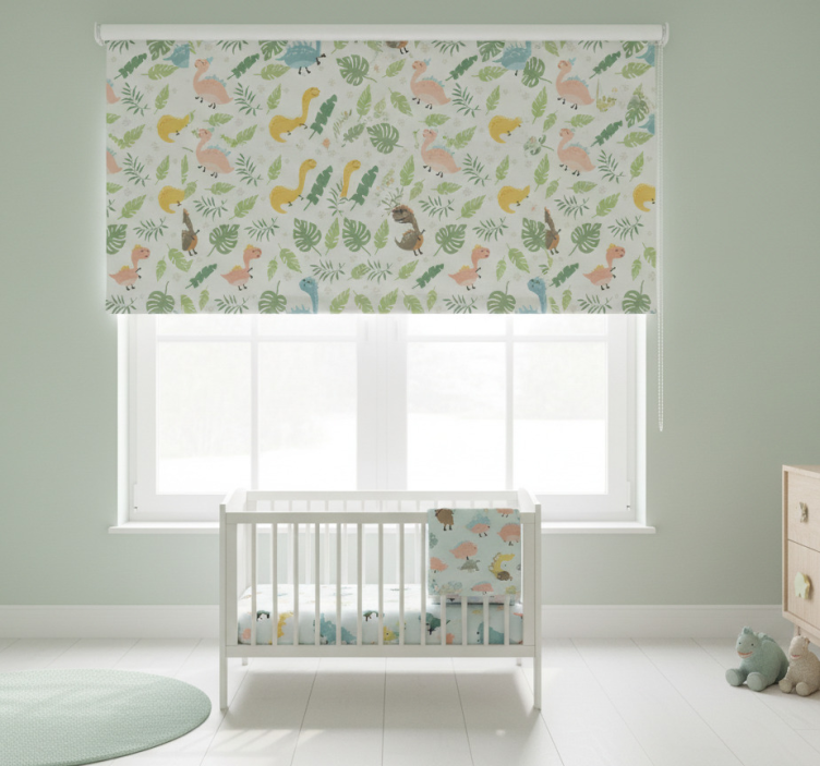 The Blind children pastel dinosaur forest pattern blind children is an excellent choice for enhancing any child's room! Its charming design fosters creativity and joy, transforming a simple space into a magical world. When used as decoration, this roller blind invites fun and curiosity, encouraging children to explore their environment while providing a comforting atmosphere. The playful dinosaur theme is perfect for sparking imagination and creating a nurturing space for growth and learning.