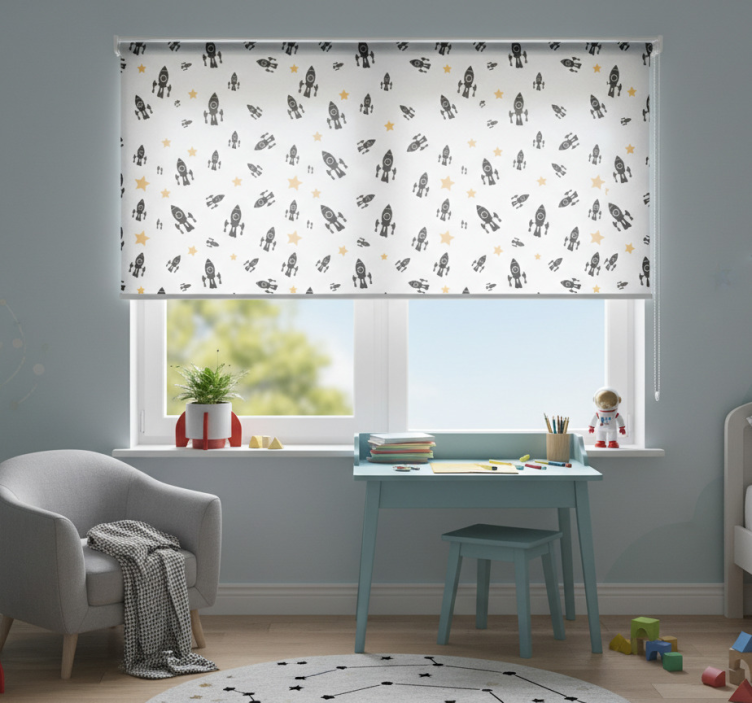 The Blind children black rockets blind children roller blind is perfect for decorating spaces where imagination takes flight! This charming design transforms any room into a playful retreat, encouraging children to dream big. Its whimsical graphics inspire creativity and provide a comforting atmosphere, making it an ideal choice for parents who want to enrich their child's surroundings.