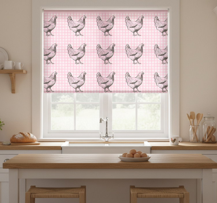 Enhance your home decor with our Blind kitchen hen patterned decor blind kitchen. This roller blind adds a unique flair to your kitchen, making it a focal point that impresses guests and family alike. With its playful hen design, it inspires a sense of joy and creativity in your cooking space. Not only does it beautify your home, but it also provides essential functionality, regulating room temperature and ensuring your privacy. Embrace the charm of this decor and elevate your kitchen to new heights!