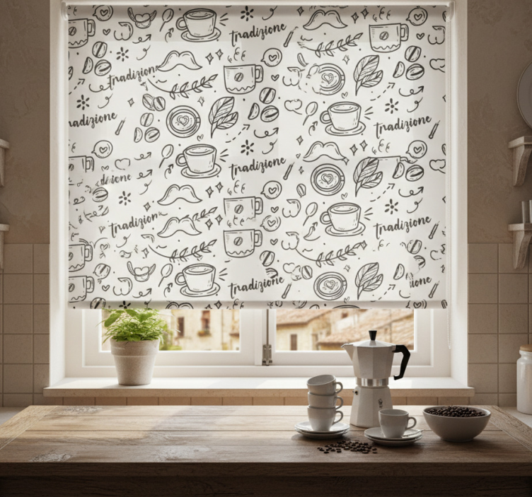 The Blind kitchen italian tradition with coffee blind kitchen is not just a functional addition but an inspirational element for your home. Its elegant design and versatility make it ideal for enhancing the aesthetic appeal of any kitchen. Imagine the warm ambiance created by the soft filtering of natural light through this beautiful roller blind, inviting a sense of comfort and relaxation. Transform your kitchen into a cozy retreat with this stunning piece that speaks to Italian tradition!