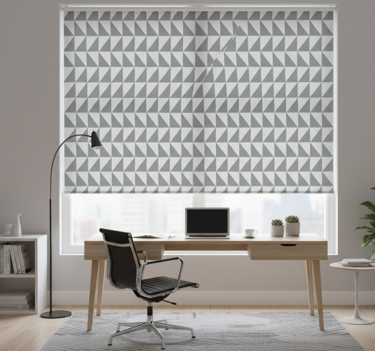 Reference: E7255Transform your space with our Blind office grey geometric pattern, a stunning blend of modern elegance and functionality. This roller blind features a captivating geometric design in shades of grey that harmonizes beautifully with any office or home decor. With easy assembly in just 2 clicks, cleaning made effortless, and the ability to provide privacy while regulating room temperature, this product is an exceptional choice for enhancing your environment!