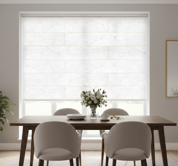 The Dining room blind in gray tones and gold marble dining room blind is more than just a window covering; it’s a statement piece that brings a modern touch to your home! Imagine the warm ambiance it creates while protecting your space from harsh sunlight. With its beautiful design, this blind improves the overall aesthetic of your dining area, making it a stylish retreat for gatherings and meals!