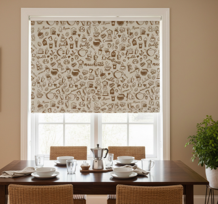 The Dining room blind inspired by italian coffee culture dining room blind is not just a window covering; it is a statement piece that enhances the ambiance of your dining area. Imagine hosting friends and family, surrounded by the warm, inviting tones reminiscent of your favorite café. This blind elevates your interior design, reflecting your unique style and love for coffee culture, all while providing functional benefits. It's the perfect way to create a cozy atmosphere that sparks delightful conversations!