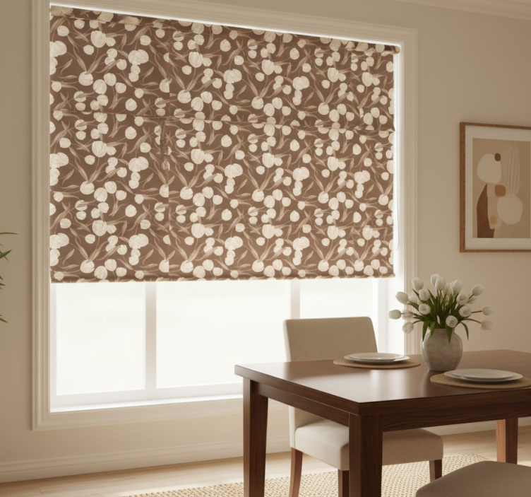 The Dining room blind with elegant beige tulips pattern dining room blind is more than just a functional item; it’s a statement piece that elevates your decor. Imagine hosting dinner parties where your guests are captivated by the elegant design, seamlessly blending style and comfort. This roller blind not only enhances the beauty of your dining area but also creates a warm and inviting atmosphere, making it an essential part of your home decor.
