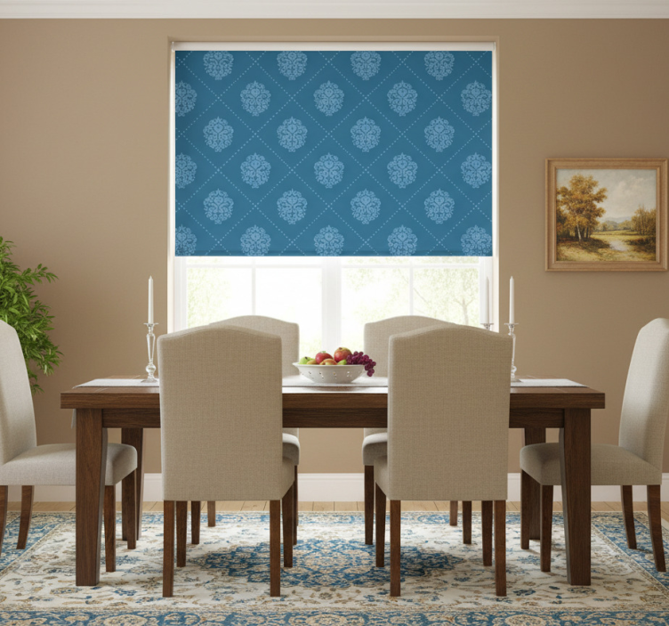 Dining room blind with floral diamond pattern
