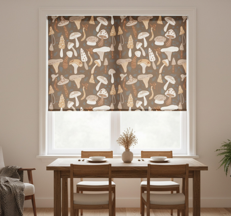 The Dining room blind with forest mushrooms on brown dining room blind serves as an inspiring addition to your home, effortlessly enhancing your dining area with its unique aesthetic. Imagine hosting dinner parties or family meals under a canopy of enchanting mushrooms, where nature meets comfort. This blind is designed to elevate your decor while offering a delightful conversation starter, making every meal an enjoyable experience!