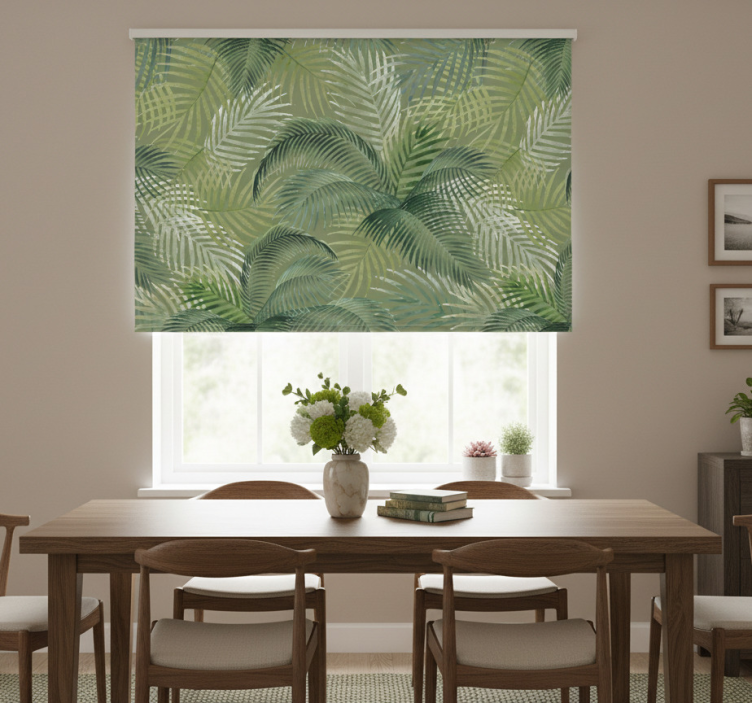 Dining room blind with green leaves pattern