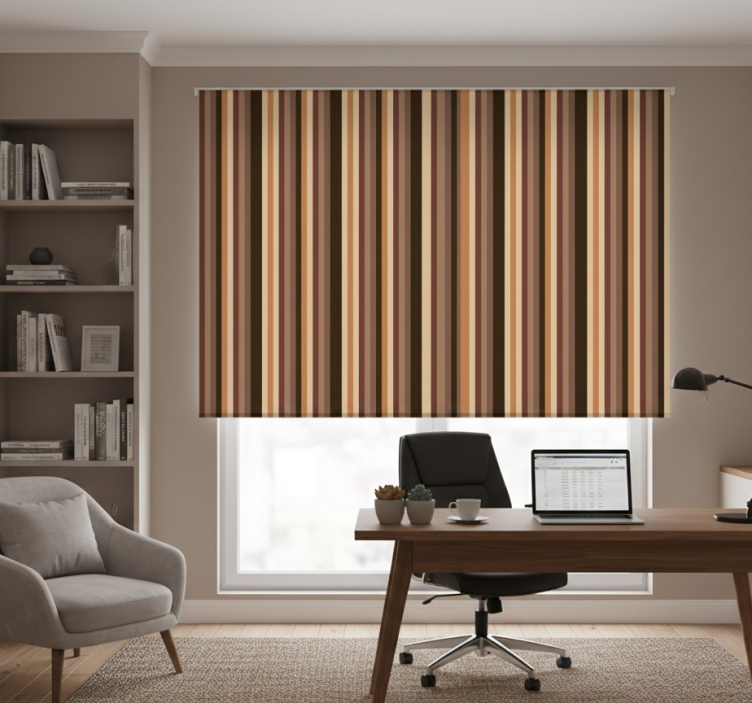 The Home office blind in brown vertical stripes home office blind serves as an inspiring focal point in any room design. Its unique pattern brings warmth and character to your workspace, making it a perfect fit for those looking to elevate their home office decor. Imagine the positive energy flowing as sunlight filters through the stripes, creating a cozy and productive environment!