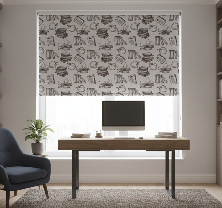 Reference: E6230Introducing our Home office blind with vintage study elements, a beautifully designed product that seamlessly blends function and style. With its charming vintage motifs, this roller blind enhances any workspace, creating a warm and inviting atmosphere. The design features easy assembly and disassembly in just 2 clicks, making cleaning a breeze. This roller blind not only protects your room from direct sunlight, but also provides privacy when lowered, allowing you to regulate the room temperature effortlessly. The customization options let you choose from three different textures, ensuring the perfect fit for your decor and light preferences!
