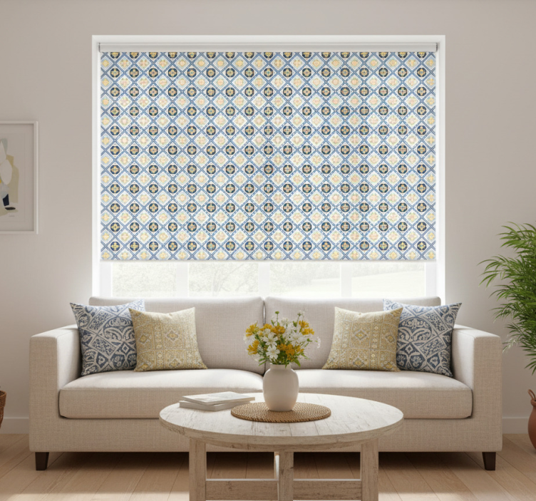 This Modern blind in baby blue and yellow portuguese tile modern blind is not just a window covering; it is a statement piece that elevates your home decor! Imagine the beauty it brings to your living space, providing a unique charm that captivates guests. The vibrant colors and intricate designs work harmoniously to uplift the mood of any room. Whether you want to create a cozy reading nook or a stylish dining area, this modern blind adds the perfect touch of elegance and warmth!
