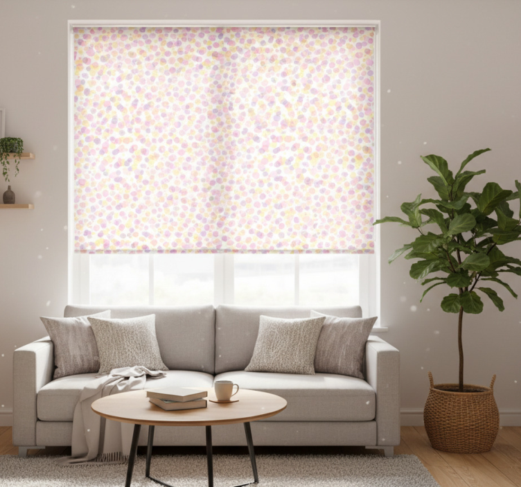 Reference: E7758Transform your space with our Modern blind in pastel watercolor polka dots, a delightful blend of style and functionality! This enchanting design features playful pastel hues adorned with charming polka dots, creating a lighthearted atmosphere in any room. The blind not only enhances your decor but also offers practical benefits such as easy cleaning and privacy. With its ability to protect your space from direct sunlight while allowing for temperature regulation, it's the perfect addition to your home!