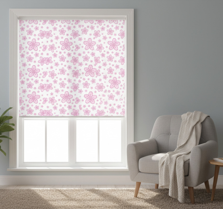 Transform your interior with the Modern blind with pink cute little flowers on white modern blind, designed to inspire creativity and warmth. This enchanting roller blind acts as a focal point, elevating the decor of your space and inviting a sense of joy and comfort. Its charming floral design harmonizes with various styles, making it an ideal choice for those looking to add a touch of personality to their home.