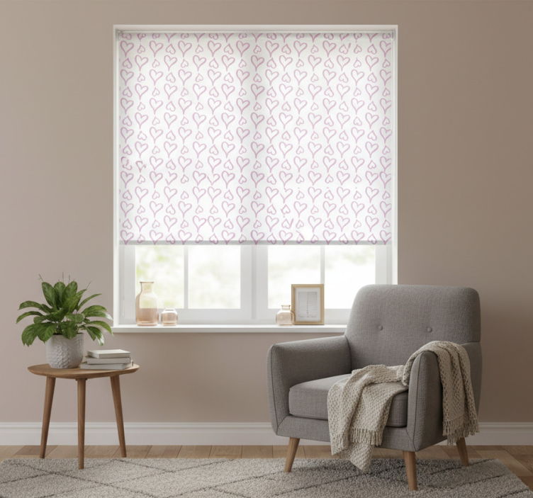 Choosing the Modern blind with pink illustrated heart icons modern blind brings a playful and vibrant touch to your home decor. This unique design not only adds a splash of color but also acts as a functional element to your space. Its charming heart motifs create a welcoming atmosphere, making it ideal for children's rooms, nurseries, or any area where you want to inspire joy and creativity. Let your decor tell a story with this enchanting blind!