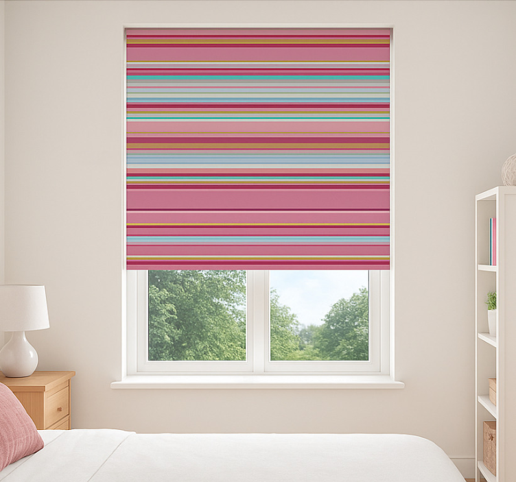 Reference: E5856Introducing our Pink Stripe Pattern blind teens, a delightful blend of style and functionality! This beautifully designed blind features a vibrant pink stripe pattern that adds a touch of modern elegance to any room. The roller blind is easy to clean and offers simple assembly and disassembly in just two clicks, making it a practical choice for busy lifestyles. It protects your space from direct sunlight while ensuring your privacy when lowered, allowing you to enjoy bright, airy rooms without compromising on comfort.