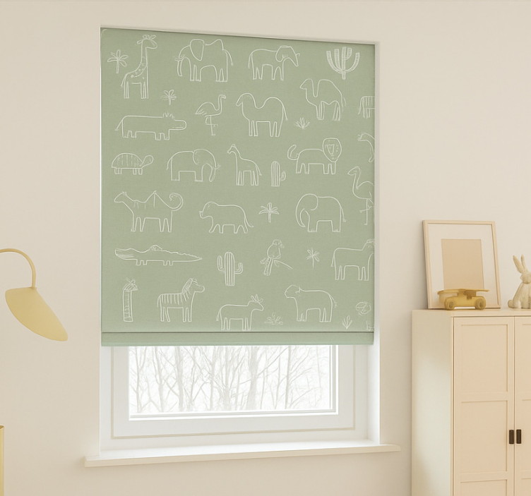 Reference: E6074Introducing our delightful Scandinavian blind jungle animals outline, a unique design that combines playful jungle motifs with a sleek Scandinavian aesthetic. This roller blind features easy assembly in just two clicks, effortless cleaning, and a quick disassembly process that allows for a pristine view of your surroundings. Not only does it protect your room from direct sunlight, but it also ensures your privacy while providing an opportunity to regulate room temperature. With the added security of being able to see outside without being seen, the Scandinavian blind jungle animals outline enhances your home decor while offering 100% customizable measurements and a choice of three textures to match your desired light and privacy levels!