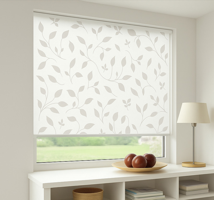 Reference: E6080Transform your living space with our Scandinavian blind with calming leaf floral design, a perfect blend of elegance and tranquility. This stunning design features intricate leaf patterns that evoke a sense of peace and harmony, making it an ideal addition to any room. Crafted with ease of use in mind, this roller blind allows for a seamless experience with easy assembly in 2 clicks and easy disassembly, ensuring your windows are always clean and well-maintained. Not only does it protect your room from direct sunlight, but it also enhances your home's decor with its customizable measurements and three unique textures!