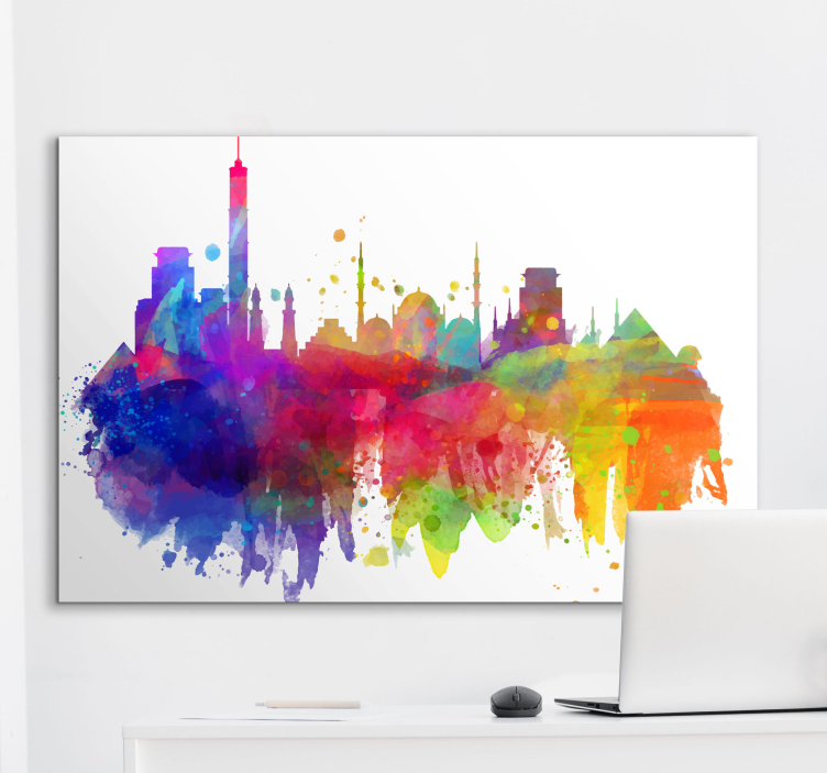 Experience the vibrant energy of the city with our Cityscape wall art colorful urban skyline. This stunning design features an array of skyscrapers in a dynamic composition, showcasing abstract forms that splash across the canvas like an explosion of color. The watercolour technique brings an artistic flair to the skyline, transforming your space into a lively urban oasis. Each brushstroke captures the essence of city life, making this artwork a perfect addition to any room!