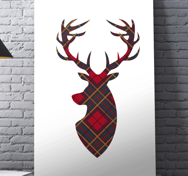 Reference: Q6574A striking representation of a stag's head features intricate plaid patterns, showcasing its majestic antlers. The design captures the essence of wildlife and brings a touch of rustic charm, making it a unique focal point for any modern aesthetic.