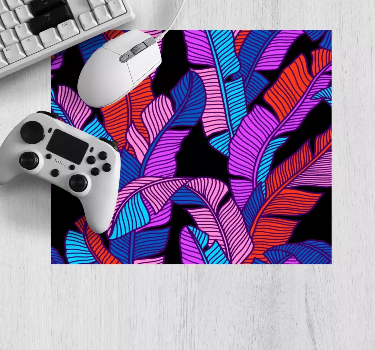 Immerse yourself in a vibrant world with our Mouse pad patterns lively leaf design. This stunning mouse pad features a lively illustration of tropical palm leaves, embracing a neon color block aesthetic that bursts with life. The bright and vivid colors create a graphic pattern that brings a fresh, cheerful vibe to any workspace. Perfect for those who love to add a touch of nature's beauty to their daily routine, this mouse pad transforms your desk into a tropical paradise!