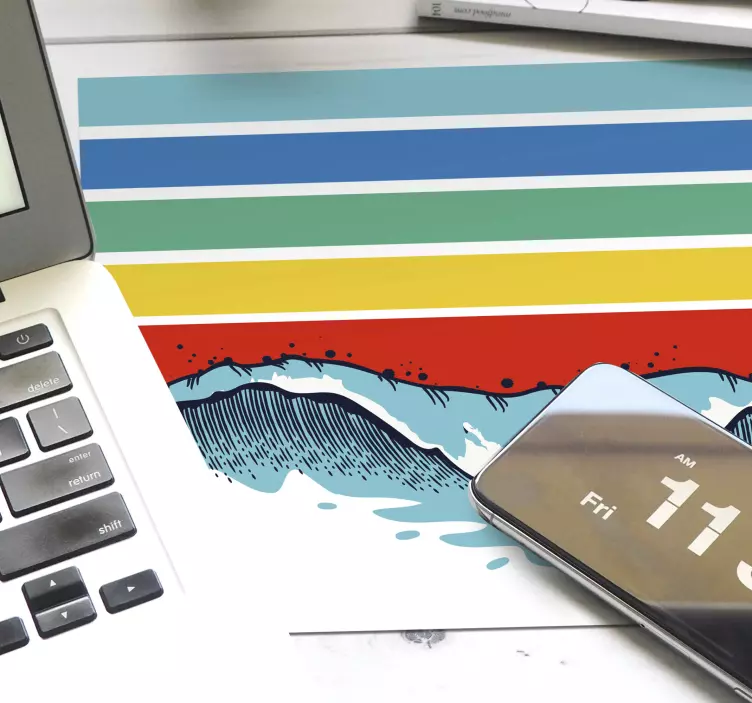 Introducing our stunning Mouse pad patterns waves and stripes, a vibrant and dynamic addition to your workspace! This design features an eye-catching combination of waves and stripes, reminiscent of the ocean's fluid movements. Each hand drawn illustration encapsulates the essence of surf culture, with colorful and abstract patterns that will invigorate your desk setup, making it both functional and inspiring!