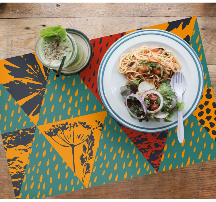 Introducing our Original placemats bold geometric design, a stunning fusion of vibrant triangles and abstract patterns that bring the essence of a jungle to your dining experience! This modern design features a rich tapestry of tribal motifs and floral elements, creating a colorful and lively atmosphere. Perfectly suited for those who appreciate artful decor, these placemats are not just functional but a celebration of nature's beauty!