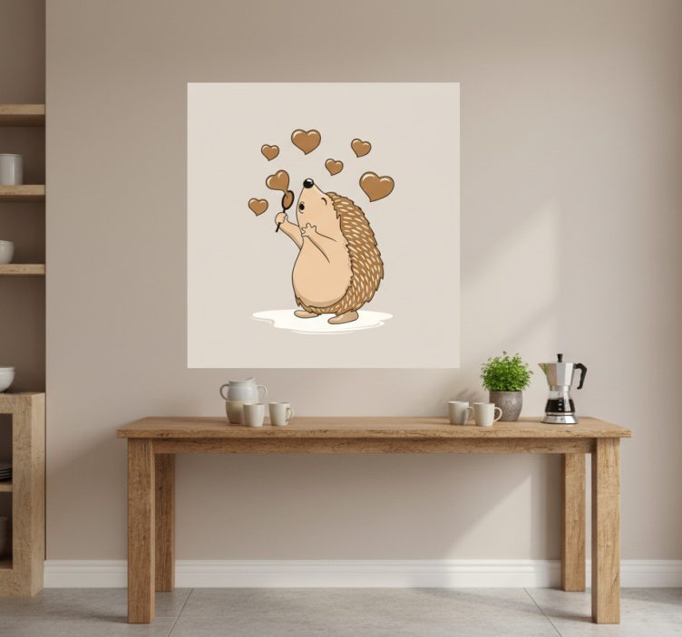 Elevate your kitchen's ambiance with the Kitchen poster hedgehog with love hearts kitchen poster. This enchanting piece not only adds a touch of cheerfulness but also serves as a reminder of the love and care that goes into cooking. Its charming artwork inspires creativity and joy, making every meal preparation feel special and inviting!