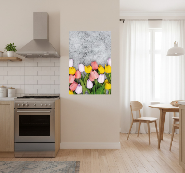 Reference: G635Introducing our stunning Kitchen poster of similar tulip flowers, a beautifully designed piece that brings the essence of nature into your home. This captivating artwork features a vibrant array of tulip flowers, showcasing their rich colors and delicate shapes. Crafted with a 180g/m2 grammage for durability, it boasts a semi-matt finish that eliminates reflections and enhances high color intensity, making it a perfect addition to your kitchen decor!