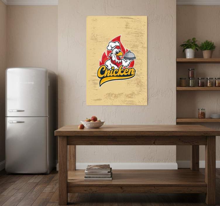 Reference: G644Introducing our stunning Kitchen poster vintage chicken chef print, a delightful addition to any culinary space! This beautifully designed poster features vibrant colors and a charming vintage style that captures the essence of a classic kitchen atmosphere. With a semi-matt finish that eliminates reflections and a high color intensity on a durable 180g/m2 grammage, this poster not only enhances your decor but also stands the test of time.