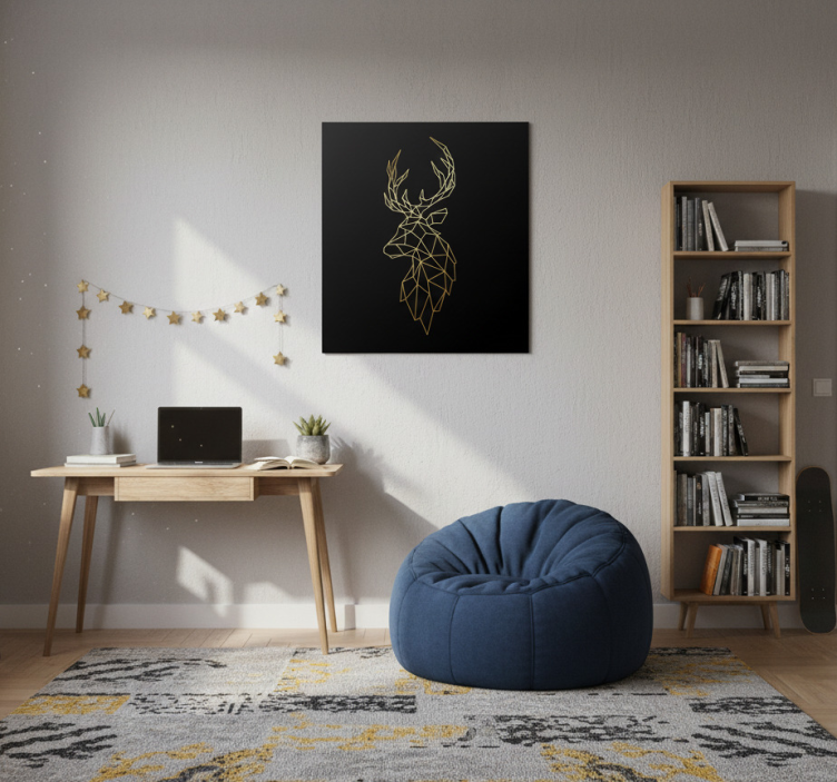 The Living room poster golden origami deer living room poster serves as more than just a decorative item; it is a statement of style and sophistication. This artwork inspires creativity and tranquility, effortlessly transforming your living area into a serene oasis. Imagine stepping into a room adorned with this exquisite piece, where every glance evokes admiration and sparks conversation. Elevate your home decor and let this poster become the centerpiece of your living room!