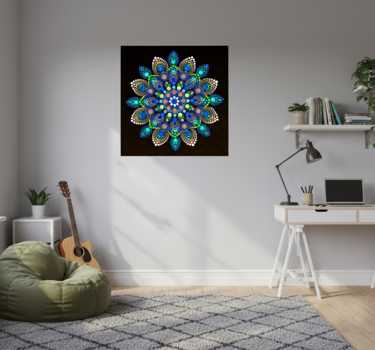 Reference: G778Brighten up your space with our Living room poster mandala colorful dots, a vibrant fusion of colors and intricate designs that captivate the eye! This stunning poster features a stunning semi-matt finish that eliminates reflections, allowing the high color intensity to shine through beautifully. Crafted from 180g/m2 material, it's perfect for any wall and adds a touch of artistic flair to your decor!
