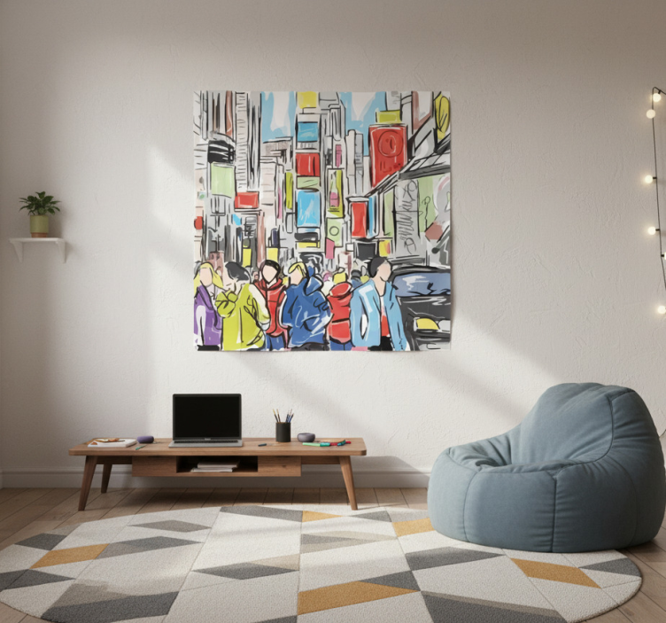 Reference: G794Introducing our stunning Living room poster modern new york people, a vibrant representation of city life that captures the essence of New York's dynamic atmosphere. This exquisite design features a semi-matt finish without reflections, ensuring high colour intensity that brings the artwork to life. Crafted with a 180g/m2 grammage, this poster is perfect for adding a touch of contemporary elegance to your living space.
