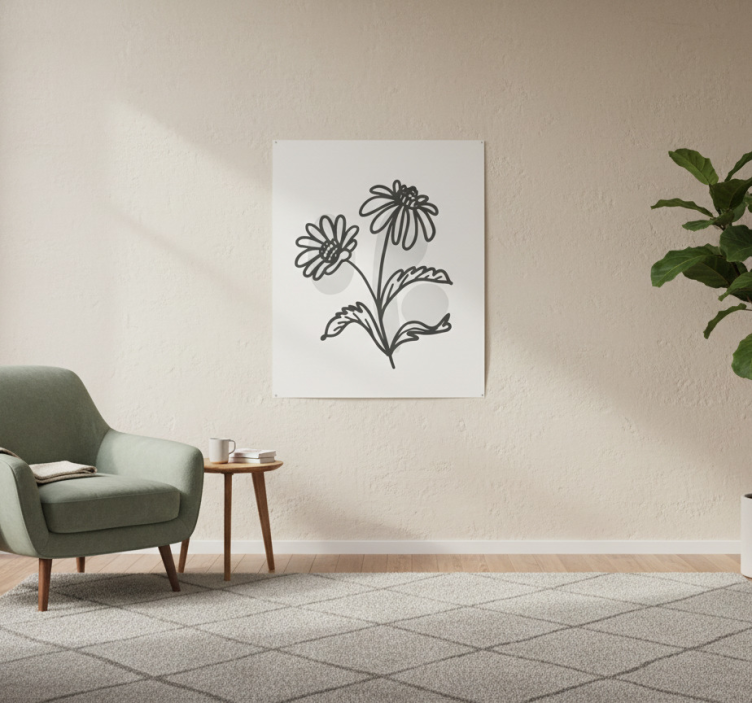 Reference: G831Transform your space with our Living room poster of daisy flowers line art design, a stunning piece that combines elegance with simplicity. This poster features a captivating line art illustration of delicate daisy flowers, beautifully printed on high-quality 180g/m2 paper. With a semi-matt finish that eliminates reflections and high color intensity, this artwork effortlessly enhances your living room ambiance.