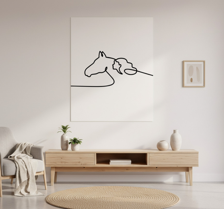 Reference: G895Introducing our stunning Living room poster woman with horses line art, a beautifully crafted design that captures the essence of elegance and freedom. This unique poster features a graceful woman intertwined with majestic horses, portrayed in a captivating line art style. The artwork is printed on high-quality 180g/m2 paper that boasts a semi-matt finish, ensuring high color intensity without reflections. This striking visual not only enhances your space but also adds a touch of sophistication to your living room!