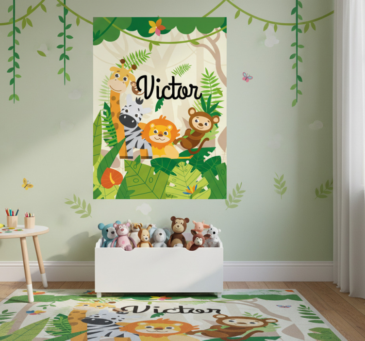 Reference: G940Discover our enchanting Nursery poster custom jungle animals, designed to bring a touch of adventure and whimsy into your child's space! This beautifully crafted poster features vibrant jungle animals in a playful design that captivates the imagination. With its 180g/m2 grammage, semi-matt finish without reflections, and high colour intensity, it’s the perfect addition to any nursery decor.