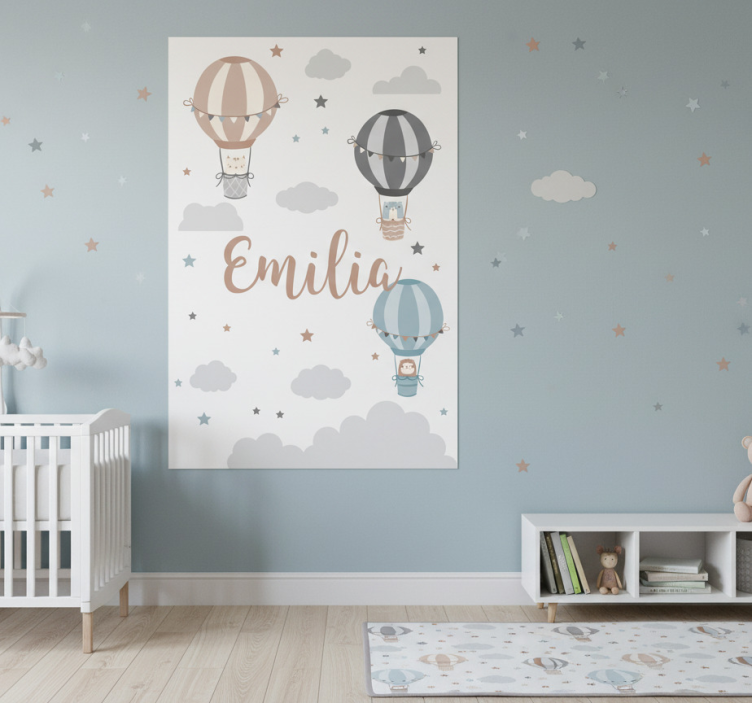 Reference: G943Introducing our Nursery poster with pastel balloons and clouds, a delightful addition to your child's space! This enchanting design features soft pastel balloons floating amidst fluffy clouds, creating a whimsical atmosphere that sparks joy and imagination. The poster is crafted on quality 180g/m2 paper, ensuring durability while showcasing high color intensity and a semi-matt finish that beautifully minimizes reflections.