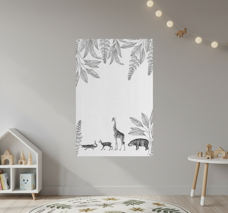 Reference: G941Introducing our stunning Nursery poster with safari animals and trees border, a delightful piece that transforms any child's space into a vibrant jungle adventure! This enchanting design features playful safari animals dancing amidst lush green trees, creating an inviting atmosphere for little ones. Crafted with a premium 180g/m2 grammage, this poster boasts a semi-matt finish without reflections, ensuring high colour intensity that captivates every gaze!