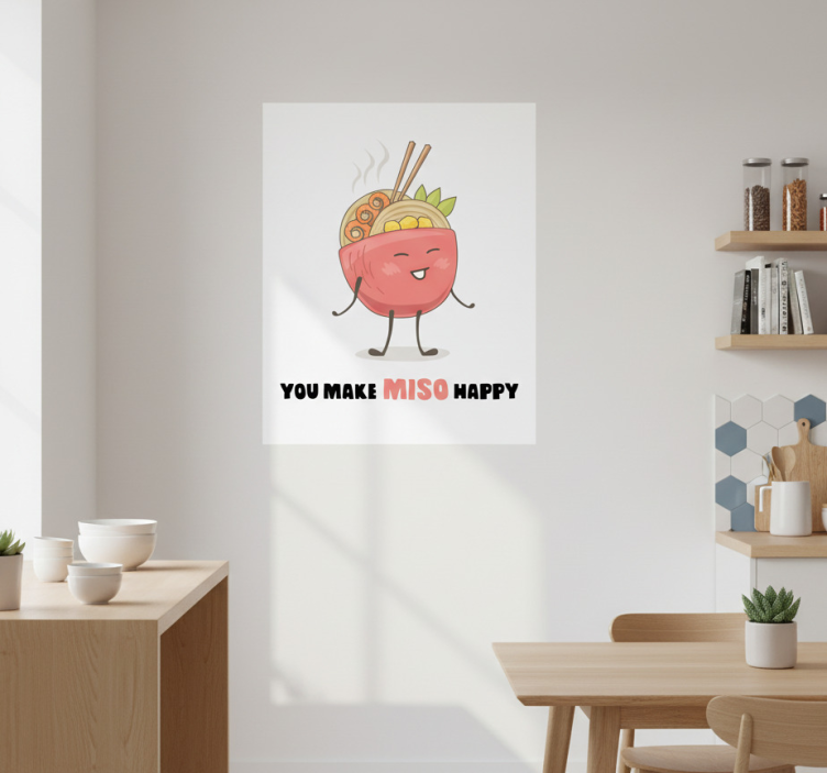 Reference: G631Brighten up your culinary space with our You make me happy kitchen poster, a captivating piece that combines a playful design with high-quality materials. Featuring a semi-matt finish that ensures no reflections, this poster showcases high color intensity that brings warmth and joy to your kitchen. With a grammage of 180g/m2, it is ideal for posters, making it a delightful addition to any home.