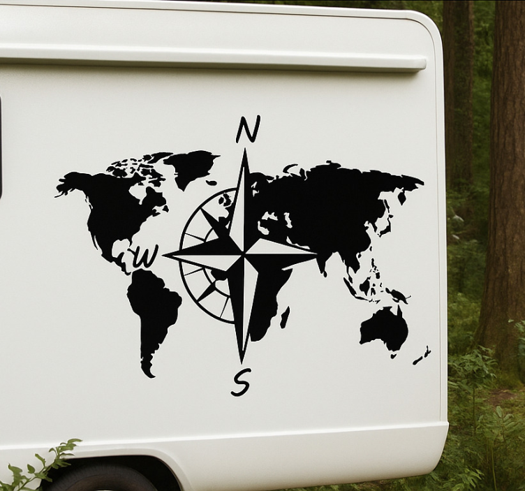 Reference: A53896Introducing our stunning Campervan decal world map with compass! This beautifully designed decal features a detailed world map intertwined with a mesmerizing compass, creating an adventurous spirit perfect for any campervan enthusiast. The intricate lines and artistic flair not only add a touch of elegance but also inspire wanderlust, making it an ideal addition to your travel space.