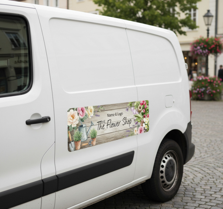 To install the Car sticker flower shop name and logo car sticker, simply choose a clean, flat surface for application. For a seamless finish, use heavy-duty adhesive Velcro for smooth areas or secure it with metal eyelets and zip ties for a robust setup. It's that easy to elevate your branding!
