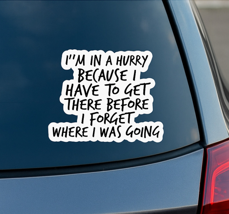 Transform your vehicle into a statement piece with the Car sticker I'm in a rush car sticker. It embodies a fun and energetic vibe that can elevate your car's appearance. Whether you're commuting to work, heading to a party, or simply running errands, this sticker is a fantastic way to showcase your lively spirit! It’s more than just a decoration; it’s a reflection of your personality!
