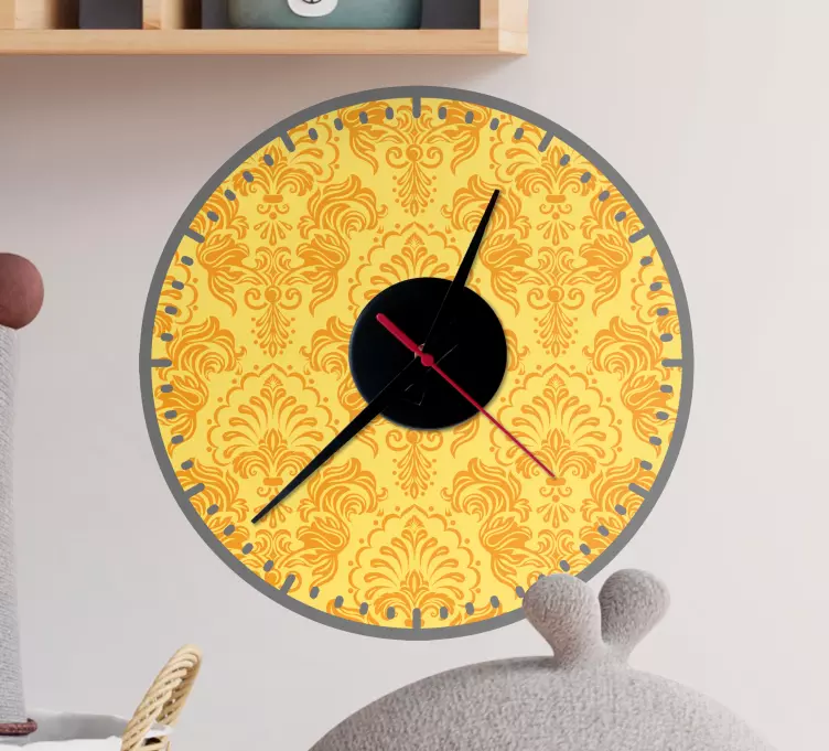 Transform your space with our Clock wall sticker elegant floral timepiece! This stunning design features an intricate damask pattern that beautifully combines elegance with a floral motif. The round shape and vibrant yellow color create a striking focal point, making it not just a timepiece but a piece of art for your walls.