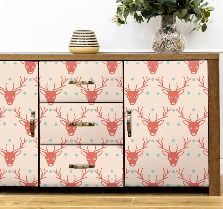 Introducing our stunning Farm animal sticker red antlered animals, featuring a delightful design that captures the essence of nature with beautifully illustrated reindeers. This captivating pattern showcases the majestic heads of deer adorned with vibrant antlers, perfect for adding a festive touch to your furniture and home decor. Ideal for the Christmas season, these farm animal stickers bring the beauty of wildlife into your living space, creating a warm, inviting atmosphere!