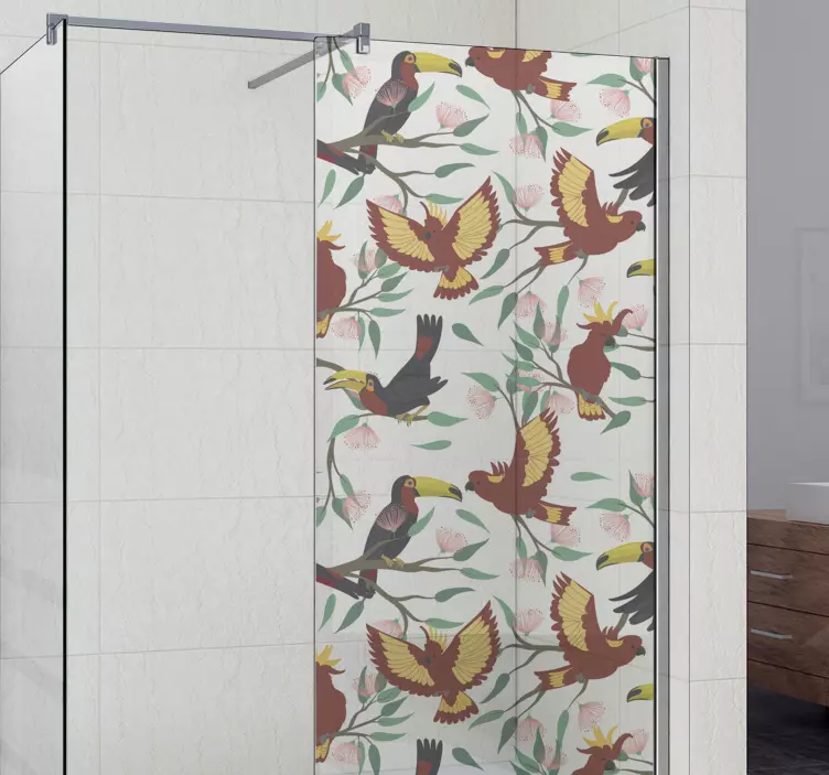 and start decorating your bathroom in just a few easy steps! This colorful design features multiple birds with trees and leaves. This product is extremely easy to install, and we recommend buying it with the optional toolkit for a better application. All of ourshower screen stickers
