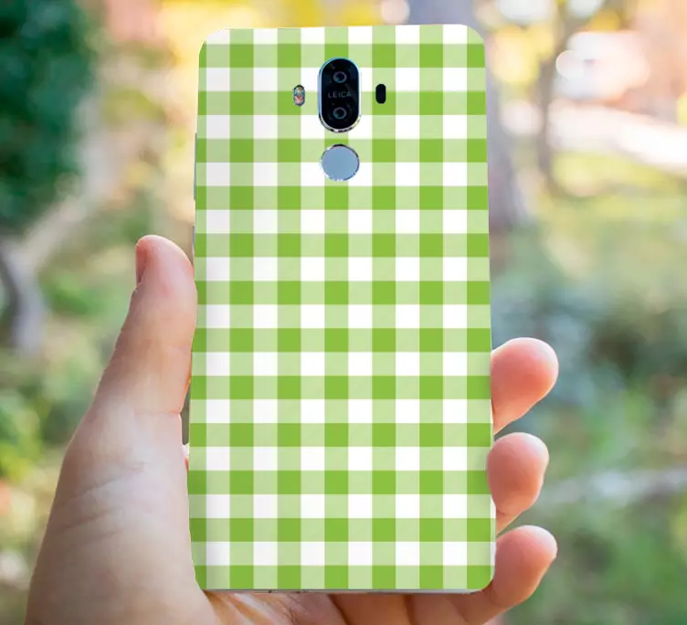 Introducing the Huawei sticker green checkered pattern, a delightful design that beautifully combines the classic charm of plaid and the fresh appeal of green. This stunning tablecloth pattern is perfect for adding a touch of elegance to your phone or any flat surface, featuring a playful gingham style that is sure to uplift your space!