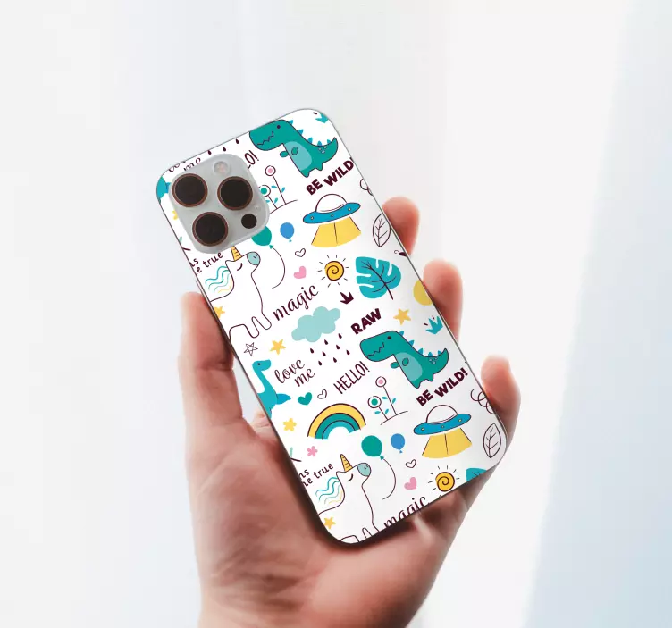 Introducing our iPhone sticker whimsical creature designs, a delightful blend of vibrant colors and enchanting graphics! Featuring adorable dinosaurs, mystical unicorns, and magical patterns, this sticker is perfect for anyone looking to add a touch of fantasy and charm to their phone. It's not just a sticker; it's a gateway to a world filled with cute creatures and magic!