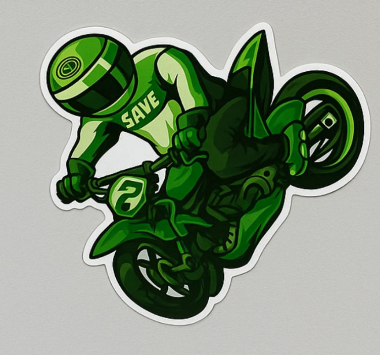 The Motorbike sticker green rider spray motorbike sticker is the ultimate way to showcase your passion for riding while adding a personal touch to your motorcycle. This eye-catching design inspires adventure, encouraging riders to express their individuality and love for the open road. Transform your bike into a canvas of self-expression and let the world see your unique style!