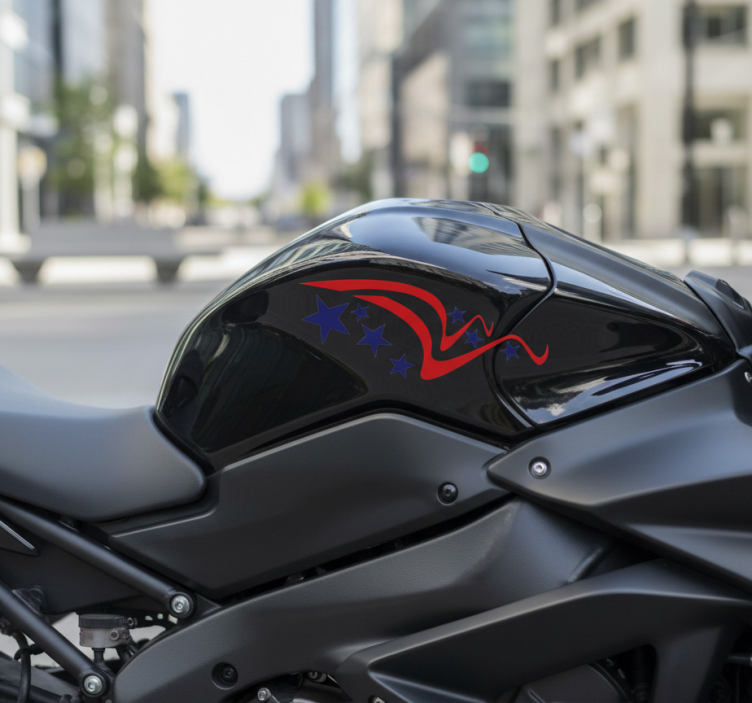 Reference: A54300Introducing our stunning Motorcycle sticker stars of liberty fire, a striking design that showcases vibrant colors and captivating patterns that embody the spirit of freedom and adventure. This eye-catching sticker features intricate star motifs intertwined with a fiery backdrop, making it a perfect addition to any motorcycle enthusiast's collection. The design is crafted with a satin finish, ensuring an intense color experience without the distracting glare of reflections.