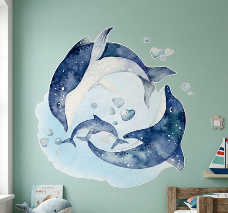 Reference: A54611Transform your space with our stunning Watercolour dolphin mural wall sticker. This beautifully designed mural features vibrant dolphins swimming among gentle waves, creating a serene and enchanting atmosphere. The captivating colors and artistic brush strokes bring a touch of the ocean into your home, making it a perfect addition to any room!